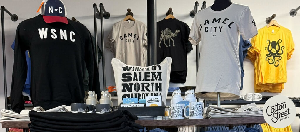 In 2025, Camel City Goods began yet another evolution—one that felt both familiar and brand new. After closing our brick-and-mortar shop, everyone kept telling us they missed flipping through tees and discovering new designs in person. Meanwhile, our longtime friends and printing partners at Cotton Street Apparel presented an opportunity to slide into their showroom just down the road. The fit was immediate. We teamed up and opened our newest location inside their space at 446 Brookstown Avenue, bringing Camel City Goods back to a physical home on the same street where so much of our story has unfolded. New location, but the spirit is the same: local hands, local craft, and a place for Winston-Salem to drop in, say hello, and feel connected.”